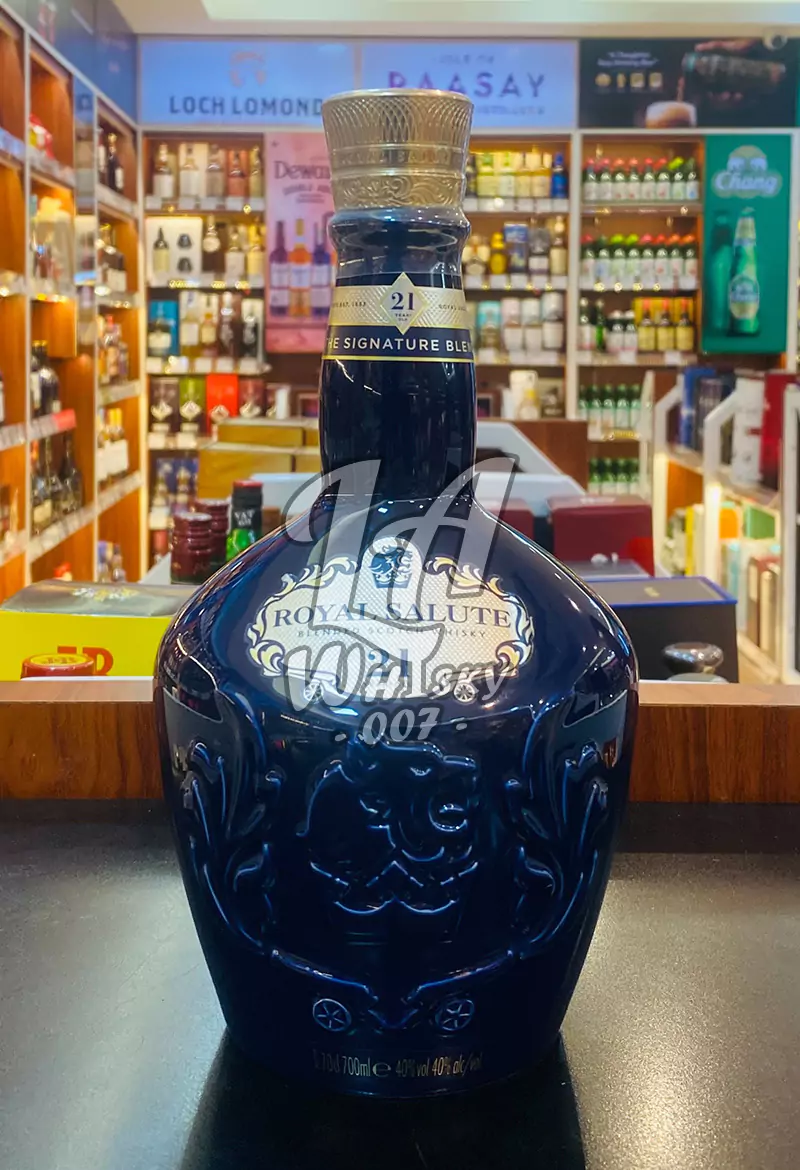 Royal Salute Signature Blend อายุกว่า 21 ปี เป็นวิสกี้ชั้นเลิศอย่างแท้จริง โดยวิสกี้นี้มีอายุอย่างน้อย 21 ปี เพื่อเป็นเกียรติแก่การยิงสลุต 21 นัดที่หอคอยแห่งลอนดอนเพื่อเฉลิมฉลองให้กับราชวงศ์ วิสกี้บรรจุอยู่ในขวดเซรามิกสีน้ำเงินคลาสสิกของ Wade