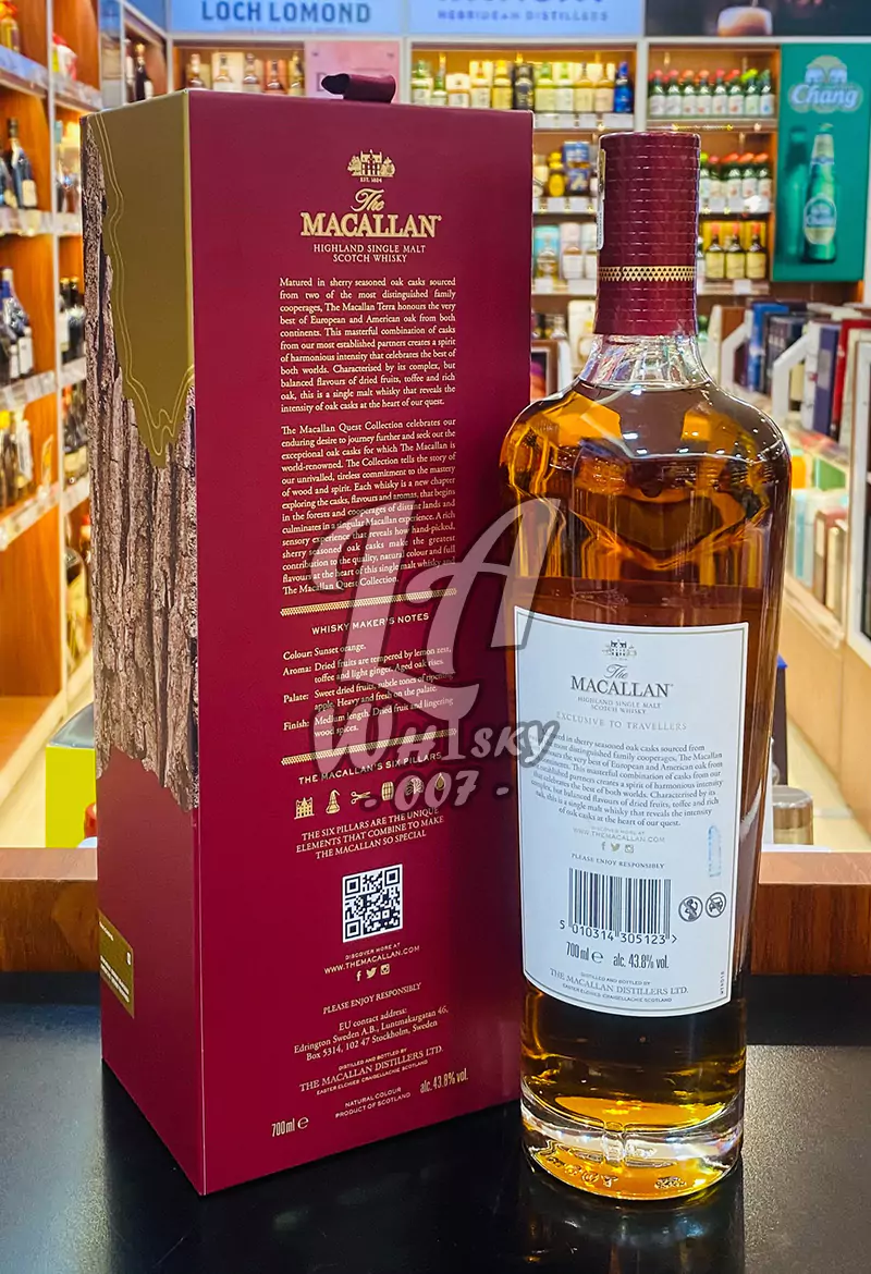 Macallan Terra เป็นส่วนหนึ่งของคอลเลกชัน Travel Retail Quest ของโรงกลั่นที่ตั้งอยู่ในสเปย์ไซด์ ซึ่งเปิดตัวในช่วงปลายปี 2017 คอลเลกชันนี้ได้รับแรงบันดาลใจมาจากถังไม้โอ๊คที่ปรุงรสเชอร์รีซึ่งบรรจุครั้งแรก โดยถังไม้โอ๊คเหล่านี้ทำจากไม้โอ๊คยุโรปและอเมริกาที่ได้มาจากโรงผลิตถังไม้โอ๊คครอบครัวที่มีชื่อเสียงสองแห่ง